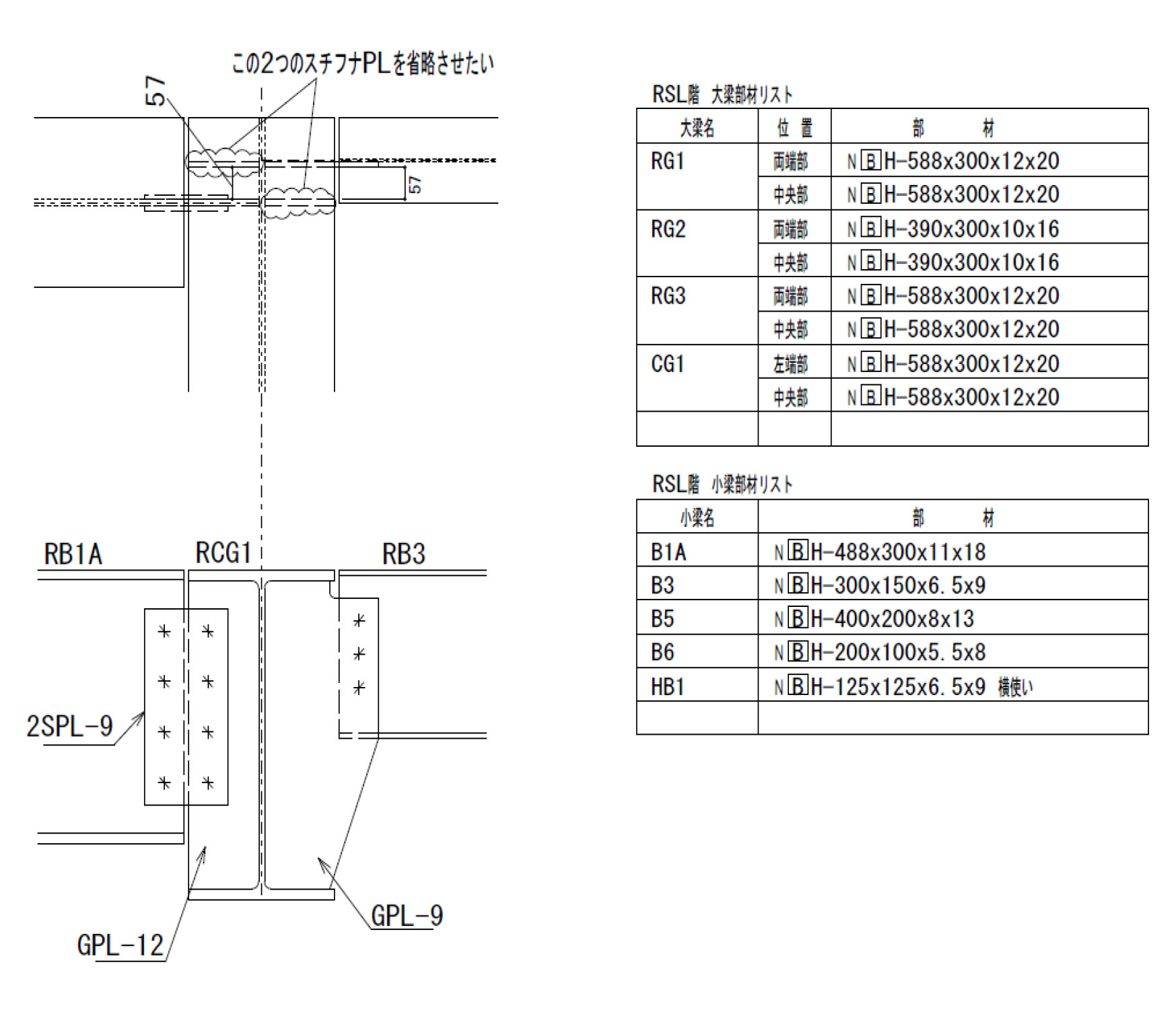 図のディテールでは完全な溶接施工ができないということを問題としていますが,それよりもRB1AのHTB接合のボルト挿入ができないということのほうが大きな問題でしょう。よって,B3のガセットPLの反対側のスチフナは取り付けることはできません。